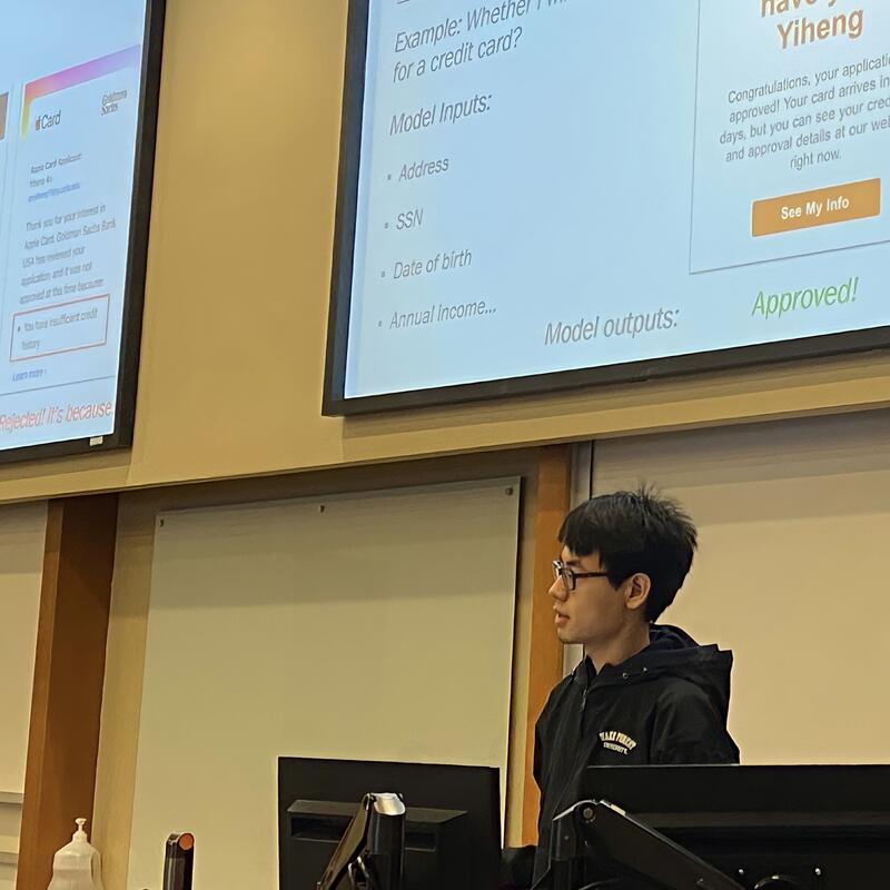 “I want to extend my heartfelt gratitude for Yiheng’s consistent support throughout our class. His assistance has been invaluable, especially in navigating the complexities of our machine-learning projects and MIMIC Pro simulations. His guidance has not only helped enhance my technical skills but also boosted my confidence in tackling challenging assignments. His readiness to help and share insights has significantly enriched my learning experience, making even the most daunting tasks manageable and more understandable. Thanks once again for being such a reliable and knowledgeable partner!”